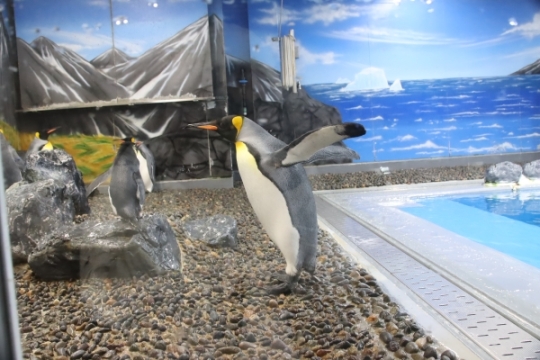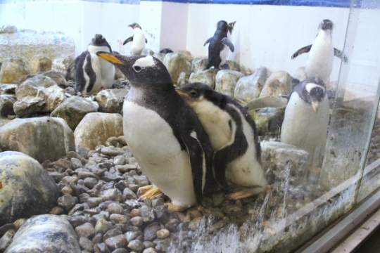 おたる水族館のジェンツー in 冬プール。隅っこが気になるのでしょうか。
