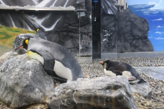 越前松島水族館のフンボルトです。冬になるとフンボルトの巣づくりが見られます。枯れ草や笹箒をほぐした物...