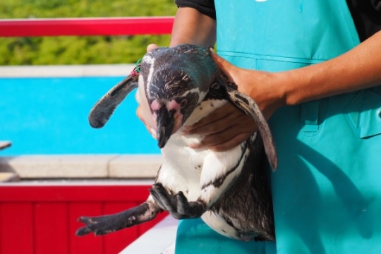 「にいさん、どこいくんや?」 南知多ビーチランドのフンボルト、飼育員さんに運ばれていくところです。ち...
