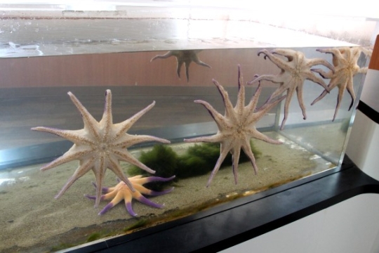 ヒトデです。上側はオレンジと紫っていう色もすごいですが、解説によれば腕の数が8から12本というのも、そし...
