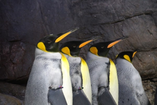 海遊館のキング3羽が、まるでアイドルユニットのように整列していました。(一番右のキングは少し離れてい...