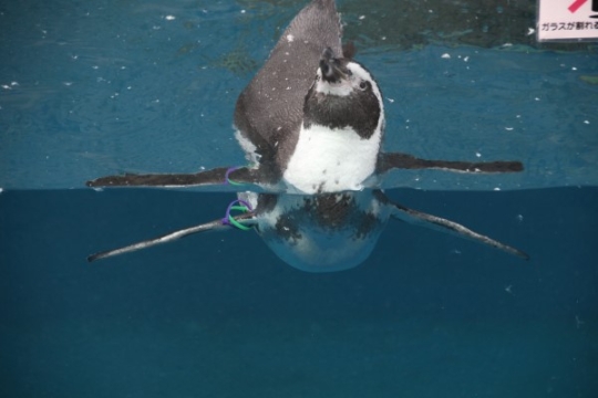 4枚フリッパーの術、フンボルト編。前回と同じく越前松島水族館にて。