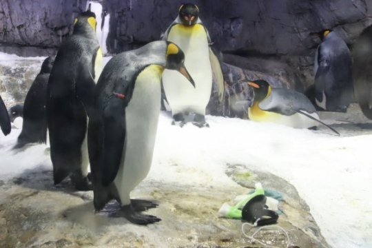 アドベンチャーワールドのペンギン王国1Fには、ときどきキングの『保育園』ができます。亜成鳥になりつつ...