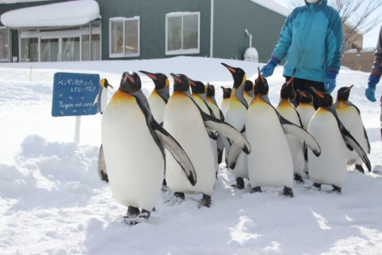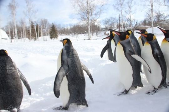 涼しい風景をお届けします。旭山動物園のペンギン散歩、キング集団が楽しげに歩いています。ーーーーーーー...