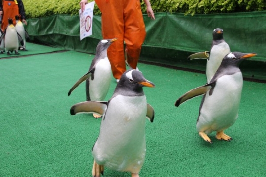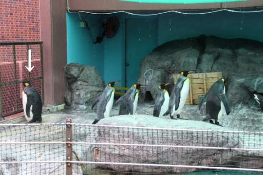 早足で帰り道を楽しむジェンツーたち。キングはゆっくりです。ーーーーーーーーーーお散歩の延長を飼育員さ...