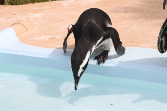 葛西臨海水族園のフンボルトが2羽、仲良く日なたぼっこ中です。はて、伸ばしたフリッパーはどちらの?と思...