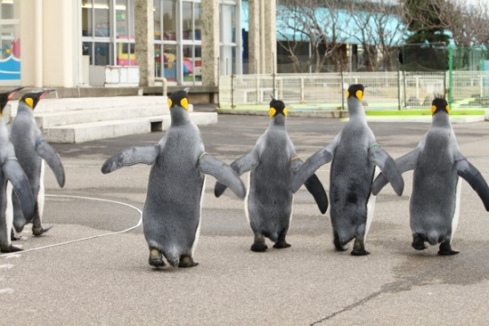 越前松島水族館、お散歩に出たキング集団。もちろん、前回のキングの歩き方と同じです。