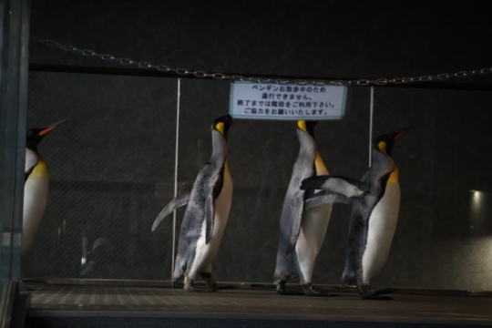 越前松島水族館、お散歩に出たキング集団。もちろん、前回のキングの歩き方と同じです。