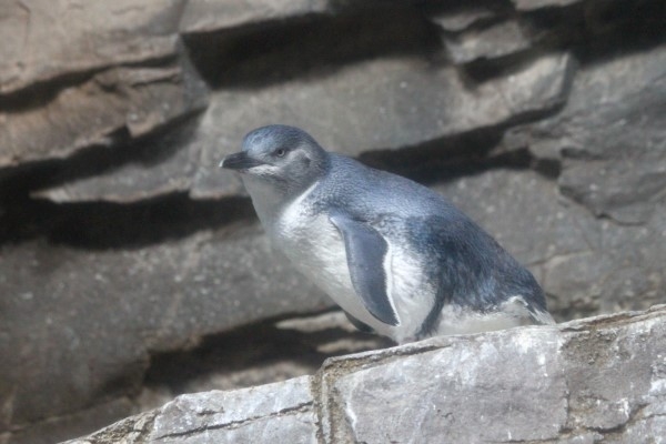 フェアリーペンギンです。コガタペンギンとも呼ばれます。ペンギン全種の中で最小、体重は1kgほど。そして、あまり『直立』していないのでペンギンの祖先に一番近いとする説もあり。それにしても鋭い目つきをしています。
