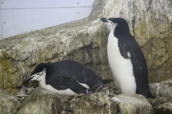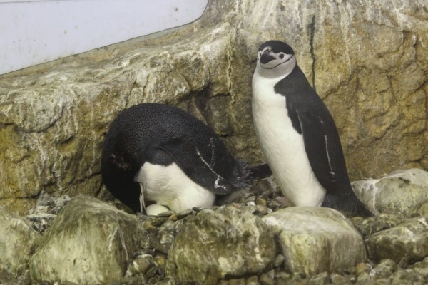 アドベンチャーワールドのヒゲペンギン、前回とは別のペア。温め中のタマゴを点検しています。相方はしっかりと見張り。