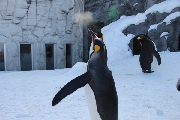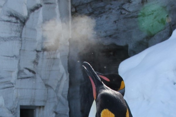 ぽっかりと、ちっちゃな雲みたいです。この気温だと、どのペンギンでも大きく息を吐くと白くなりますが、キングは身体が大きいので呼気の量が多く、見応えあり。