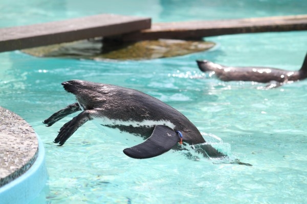 京都市動物園のフンボルト、きれいなフォームで飛び込みます。見ていると、いつも水平に落下してハラを打ったり、ほぼ垂直に水に入ったりと、個性豊かです。ちなみに、モデルは前回写真で言いがかりをつけられていた個体です。