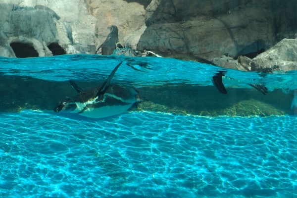 ペンギンさん、頭からフリッパーと足まで、ずいぶん長いねー。水のマジックです。鳥羽水のフンボルト。