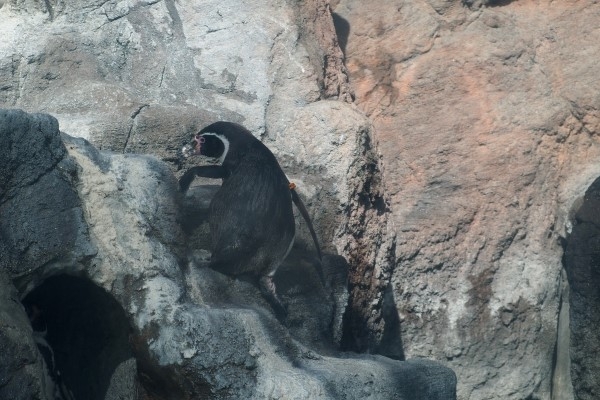 鳥羽水族館のフンボルト、岩山を下山中。大きな段差にさしかかっています。