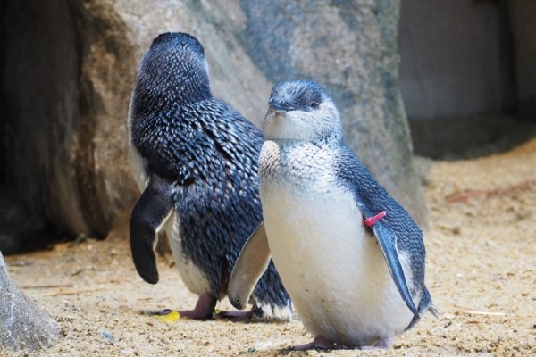 長崎ペン水のフェアリーペンギンです。いちばん小さいペンギン、足はピンクです。ほかのペンギンよりも前傾姿勢が目立ちます。