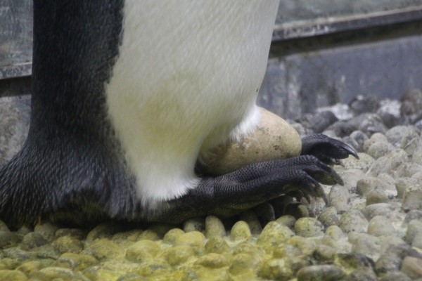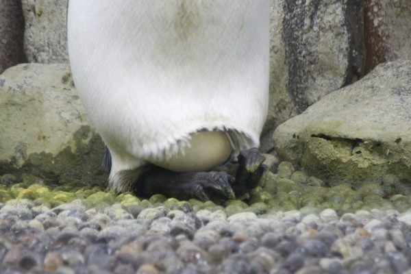 抱卵中、時々タマゴの点検をしたり、向きを変えたりするときにタマゴが見えることがあります。運がよければ抱卵交代の儀が見られることも。多くの施設では6月から9月、照明が南極モードの施設では冬に、キングの抱卵が見られるかもです。キングの繁殖は難しいのだそうです。