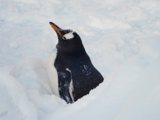 旭山動物園のジェンツー、お散歩で大暴れ! フカフカの雪にダイブして全身で雪を掘り進みます。