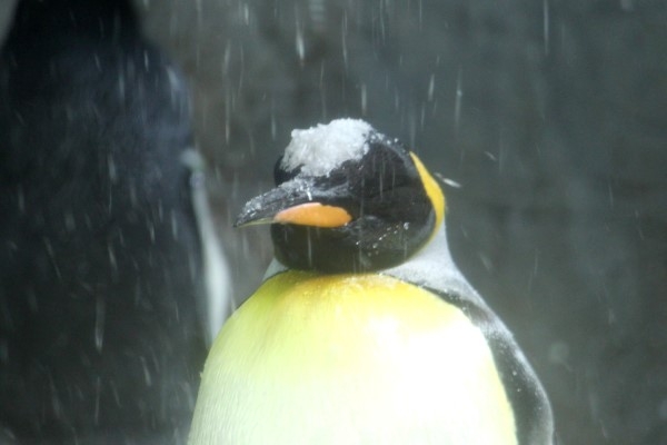 海遊館のキング、頭にカキ氷シャワーを積もらせて涼んでいます。飼育室内の気温は冷蔵庫の中よりも低いのですけど。