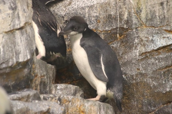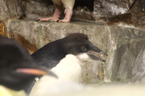 名古屋港水族館、前回とは別のアデリー亜成鳥。頭のてっぺんにヒナの羽が残っています。
