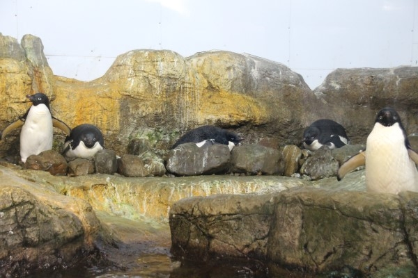 アドベンチャーワールドの海獣館。アデリーが巣についているとき、気長に見張っていると、