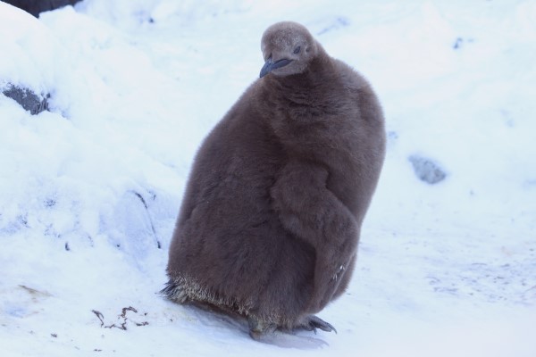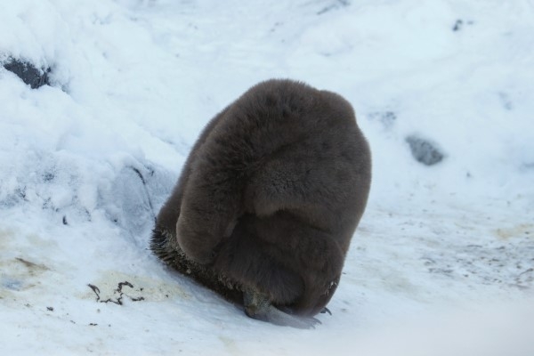 旭山動物園の雪の上に、何か黒っぽい塊。
