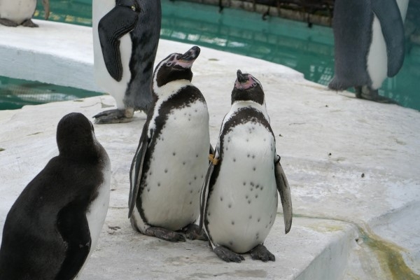 天王寺動物園のフンボルトと奥に見えているキング。足にご注目を。