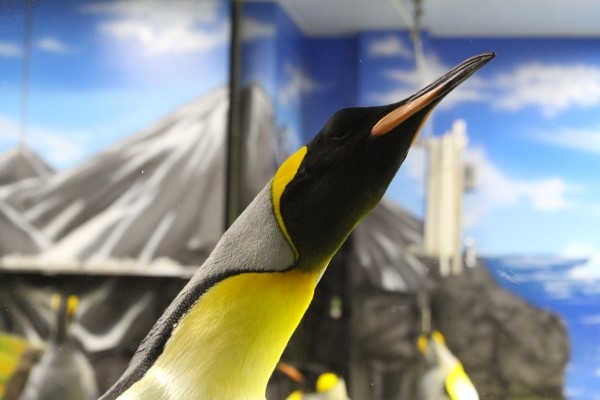 こうなるのです。ふだんは首の骨をS字形に曲げていますが、外からは見えません。縮めていても首回りにシワやタルミが出ないのがすばらしい。モデルは越前松島水族館の嬢様ペンギン。2025/07/10