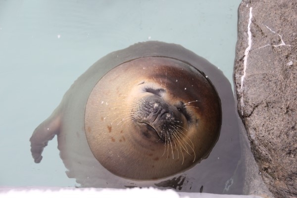 旭山動物園のアザラシ、水中で立ったままお昼寝中。断面はまん丸です。