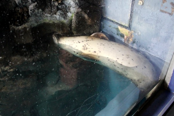 海遊館のゴマフアザラシ、この隅っこがお気に入りの個体がおりますが、そのおくつろぎスタイルが見る者を心配させることがよくあります。
