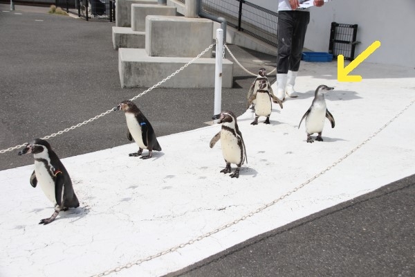越前松島水族館の『ペンギンのお散歩』、この前までヒナだったフンボルト亜成鳥も出ています。