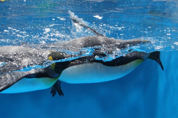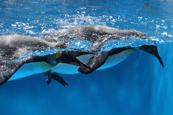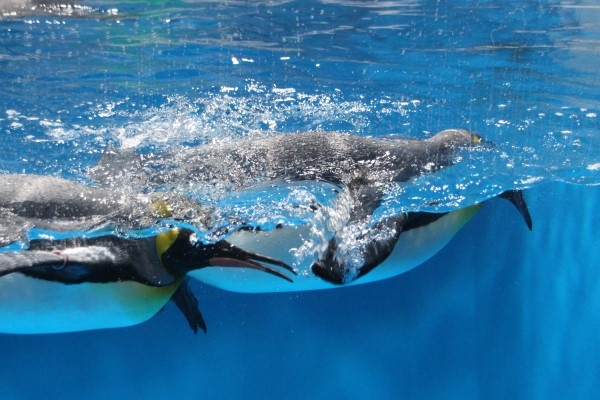 越前松島水族館のキングです。左のキングが、右のキングのフリッパーにかみついています。