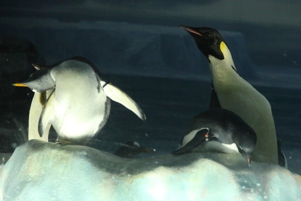 名古屋港水族館のエンペラー、仲良し2羽がそろって首なしポーズ中。