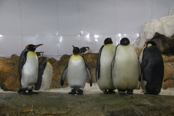 立ち姿も違います。キングは多くの場合フリッパーを身体から少し離しているのに対し、エンペラーはピッタリとくっつけています。(前回前々回の写真でもそうです。)これも寒さ対策の違いです。展示室は室温0度からマイナス3度くらいなので、エンペラーにとって実際は寒くないでしょうけど。
