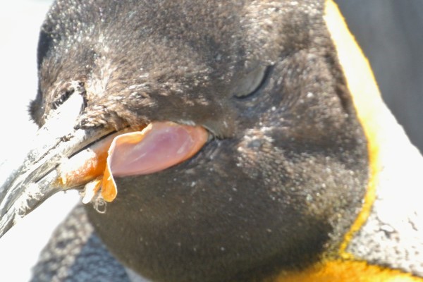 こちらは旭山動物園の換羽中キング。嘴片が半分浮いて、新しい嘴片が見えています。そのうちに古い嘴片はポロリと取れて落ちるはずです。
