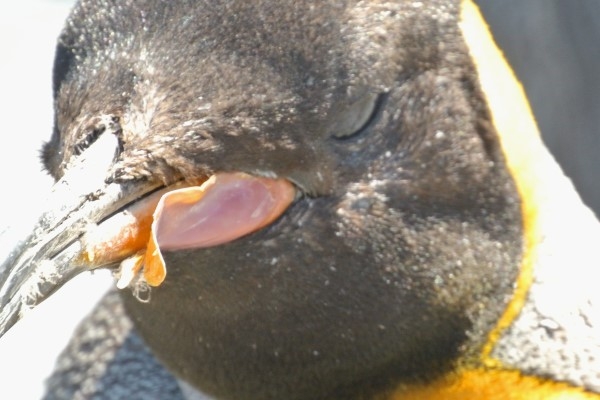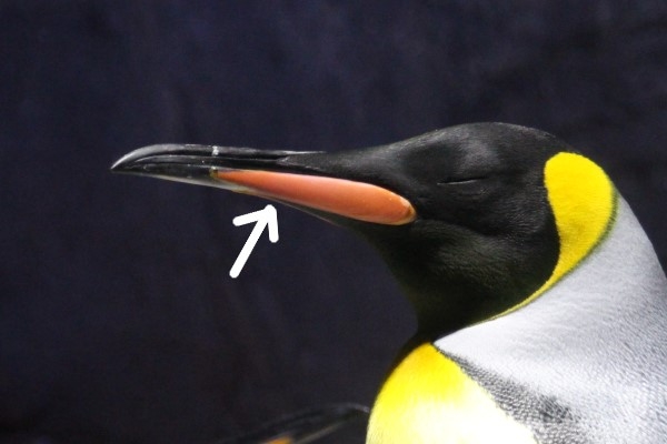 正体はこちら。キングのクチバシにあるオレンジやピンクのあの部分です。『嘴鞘(ししょう)』または『嘴片』とよばれます。換羽の時に剥がれ落ちて、更新されるのです。このモデルは海遊館の換羽直後のキング。美しいですね。