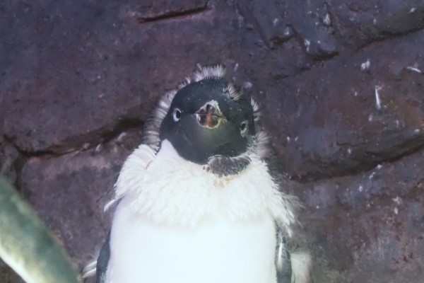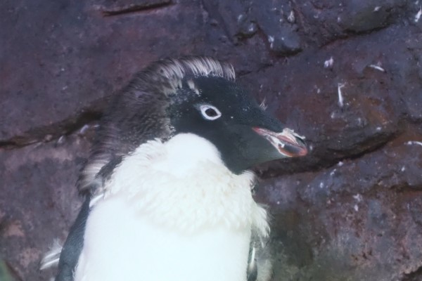 海遊館アデリー、換羽終盤期のほわほわがキュート。古い羽が新羽に押し上げられるような感じで抜けていきます。