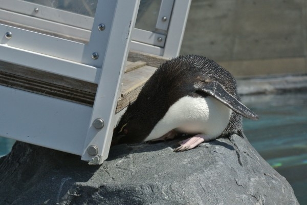 旭山動物園の若いイワトビが、スロープの下を探っています。なんだかペンギンのやっていることがワンコと似ていると思う場面が時々あります。
