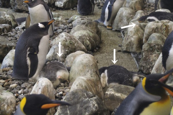 前回写真のジェンツー団地、すぐお隣ではキングの場所取り戦が繰り広げられています。巣を作らないキングは場所取りをします。そして近づく者を激しく威嚇、攻撃します。ちょっとした騒ぎになりますが、そのすぐ近くのジェンツー団地を見ると、