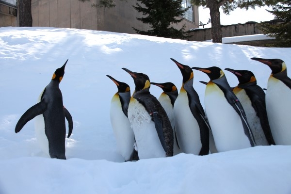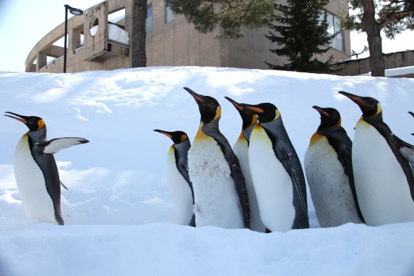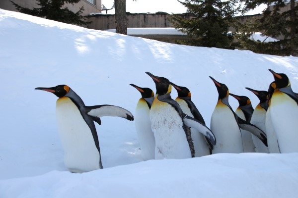「よっしゃー、いくでー!」 旭山動物園のペンギン散歩を楽しむキングたち。先頭を行くのは別にリーダーじゃなくて、ただ散歩が好きでハイになっているだけなんですが。