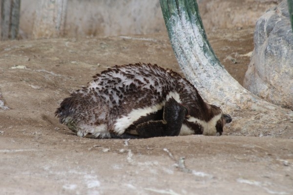 越前松島水族館のペンギンプール、偽サボテンの根元にうずくまるアヤシイ物件。