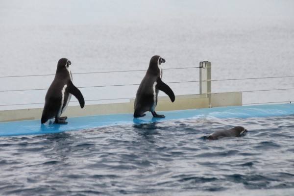 そういうわけで、フンボルトがプールの狭い縁を歩いていても、だいじょうぶなんです。