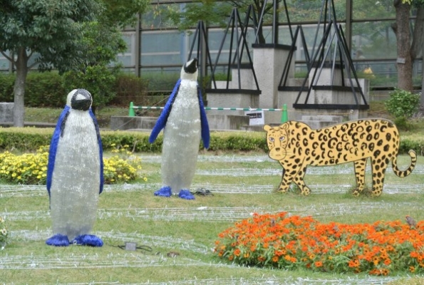 ずっと前、天王寺動物園がある天王寺公園(てんしば)で見た似せモノたちです。エンペラー(たぶん)ペンギンとヒョウ。