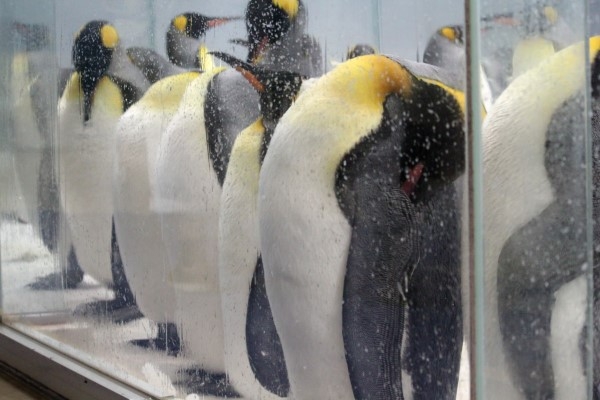 アドベンチャーワールドのペンギン王国、キングがガラス際に並んでおくつろぎ中です。しかもみんな通路側を向いています。ガラス前は抱卵・育雛のA席ゾーンですが、休憩にも好まれるようです。ガラス側からのトラブルがゼロな分、ゆっくりできるということでしょうか。