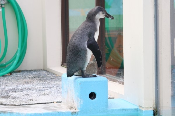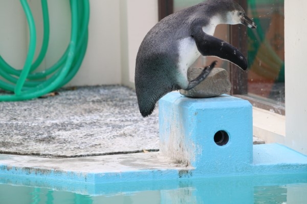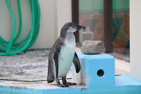 京都市動物園のフンボルト亜成鳥、ちょっと考えているふう。何をするのかな?