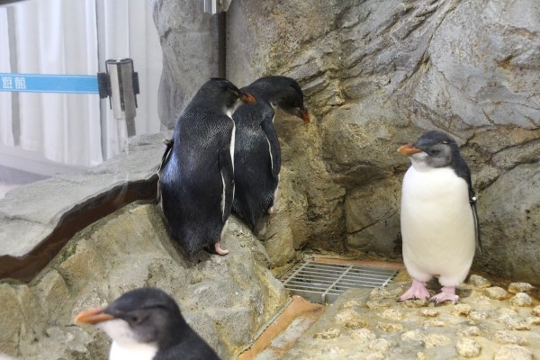 海遊館のイワトビが6羽繁殖した年の光景です。亜成鳥4羽が集まって過ごしていました。あとはボッチが1羽と実家居座りが1羽。