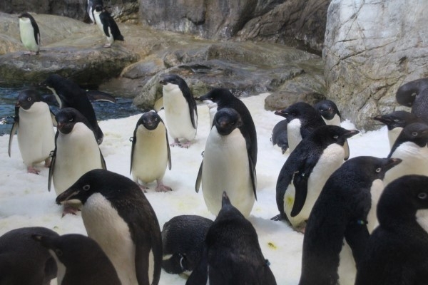 アドベンチャーワールドではアデリーペンギンの繁殖が順調です。2019年度生まれのヒナたちも立派な亜成鳥になっています。さて、どこにいるかな? 参考写真はこの下に。