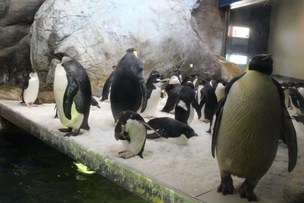 エンペラー亜成鳥はどれでしょう? 前回のアデリーと同じ部屋です。若手エンペラーがアデリー、ヒゲと同居しています。