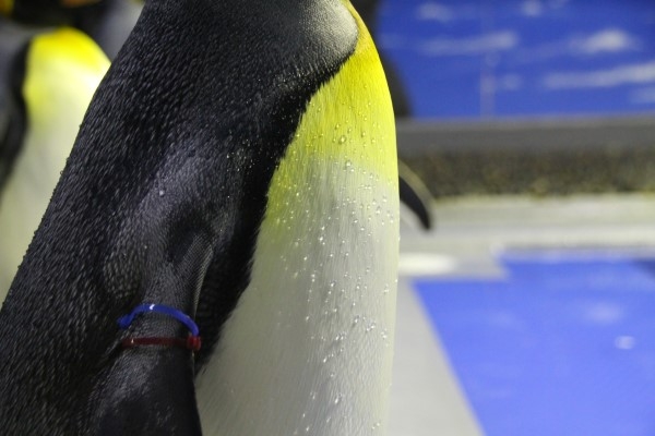キングペンギンの白いハラ、見事に水をはじいております。ブルブルっとすれば、たちまち水濡れ解消。