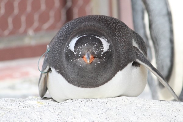 登別のジェンツー、お昼寝中。案外むっちりぽってり。さて、目はどこに? 閉じた瞼が、白い模様と区別がつかなくなっちゃってます。白いリボン模様の下先端あたりにあるはずなんですが。