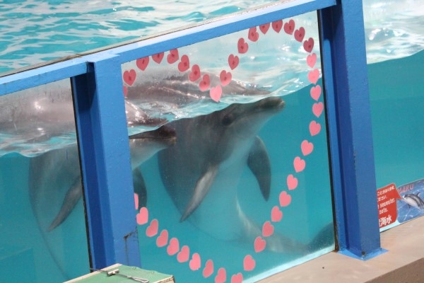 水族館にはつきもののイルカ。ちゃんとハート枠に2頭並んでポーズをとってくれてます。とてもよくできたイルカさん、何年か前に登別マリンパークニクスで見ました。
